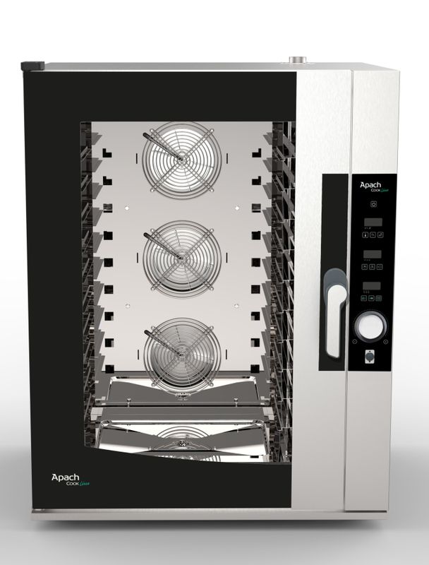 Печь конвекционная Apach Cook Line AB10QD предназначена для использования на предприятиях общественного питания для выпекания различных кондитерских и хлебобулочных изделий из свежего и замороженного теста с применением режимов сочетания конвекции и пара.