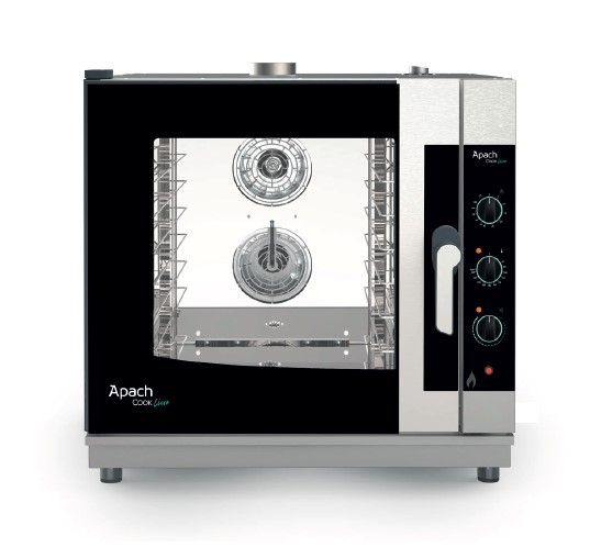 Печь конвекционная Apach Cook Line AB6QMG предназначена для использования на предприятиях общественного питания для выпекания различных кондитерских и хлебобулочных изделий из свежего и замороженного теста с применением режимов сочетания конвекции и пара.