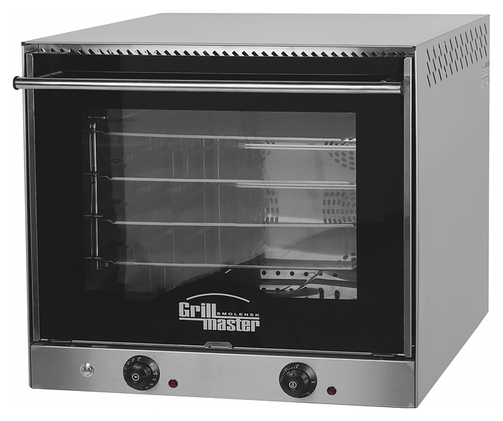 595х623х574мм, 4 уровня, инжекторное пароувлажнение, 1 мощный вентилятор конвекциии пр-во Германия, таймер 120 минут, 2-ное закаленное стекло, регулировка влажности, камера полностью из нерж.стали, с подсветкой камеры, под противни 424х335, 4 противня из нерж. стали в комплекте, подходит под установку на расстоечный шкаф РПК 4 г.нетто 595х613х574, 35 кг, полностью из н/стали, 3 кВт 220В, г.брутто 680х700х830, 42кг