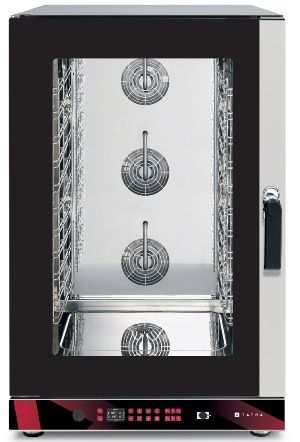 817х825х1317 мм, 400В, 15,8 кВт, 12 уровней GN1/1- 600х400, электронная п/у, инжекторное пароувлажнение, макс. температура 260С, 3 вентилятора, 5 скоростей вращения вентиляторов, реверс, автоматическая мойка, 100 программ, 4 этапа приготовления для каждой программы + предварительный нагрев, термощуп в комплекте, USB