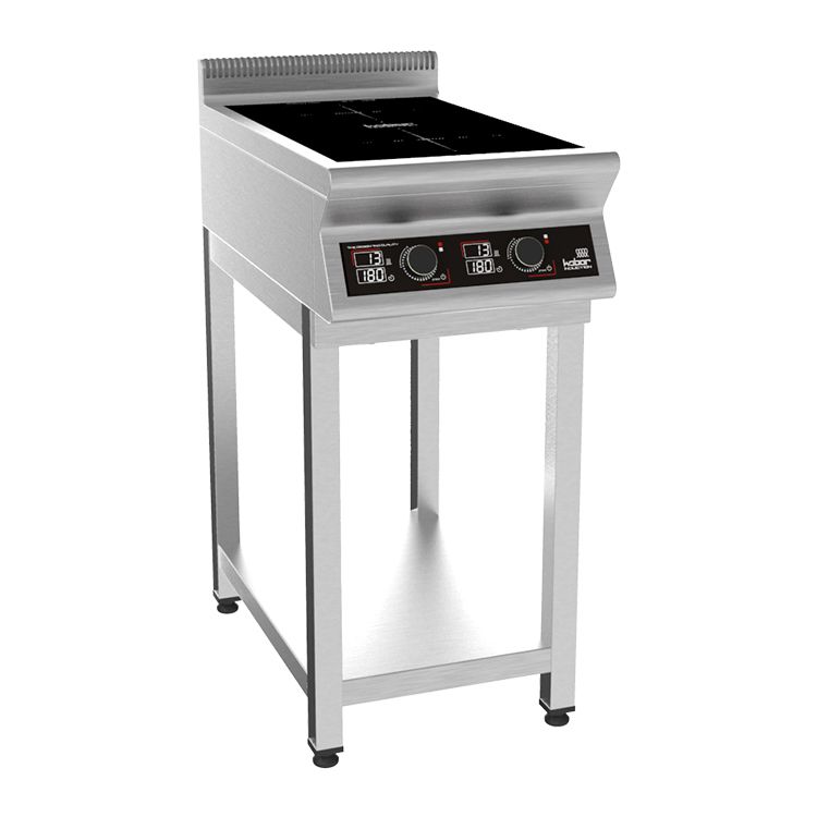 425х900х870 Плита индукционная на открытой подставке, 2 конфорки мощностью 2х3,5кВт, электронная панель управления с цифровой индикацией, 13 уровней нагрева, таймер до 180мин., съемный жировой фильтр, корпус из н.с. AISI 304, регулируемые по высоте ножки, рабочая поверхность - стеклокерамика 6мм, 7 кВт, 220В.